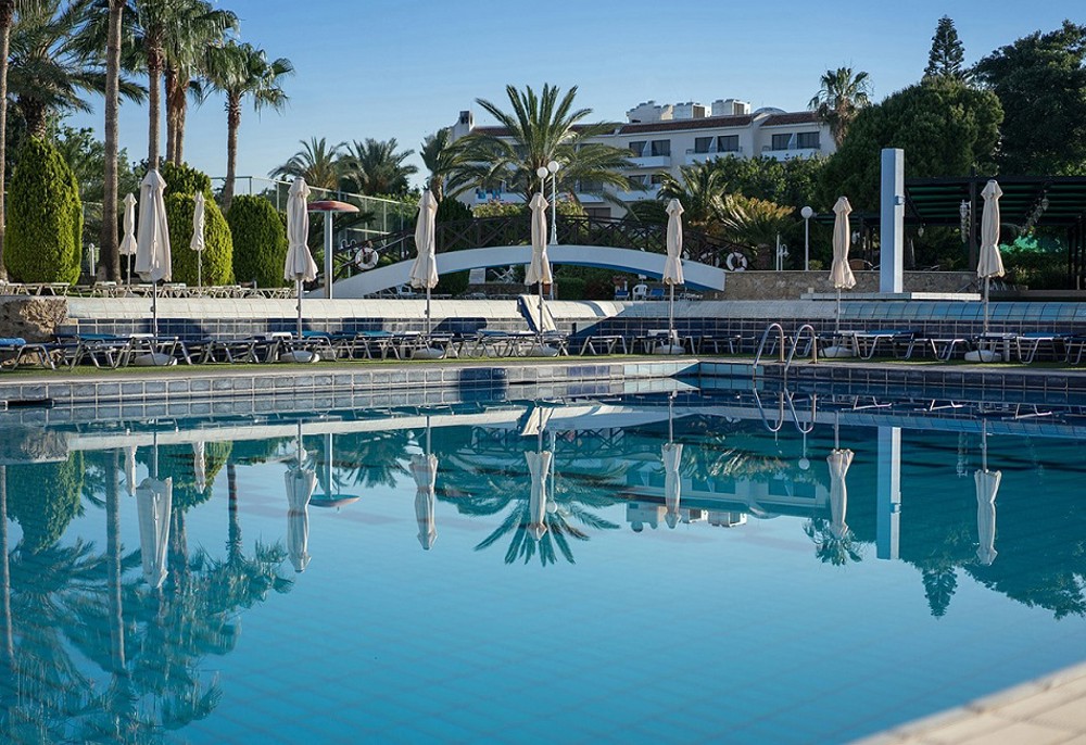 The spacious rooms of the Aloe Hotel bring comfort and hospitality right there for your enjoyment. A programme of entertainment has the fun all planned out, and an array of facilities on offer which include two lovely outdoor pools with plenty of terrace space for sunbathing, tennis courts, a games room, gym and a health club with sauna, massage and more. The hotel's two restaurants serve a range of cuisine, with Cyprus theme nights a popular fixture where traditional buffet and folklore are the order of the day. In summer, the pool bars are open, or to escape the beating rays, there is also a tea lounge, cocktail bar and coffee shop. The centre of Paphos is 15-20 minutes on foot, or 5 minutes by car. Here you can discover the picturesque harbor along with the Medieval castle and a selection of seafood restaurants among its other attractions.