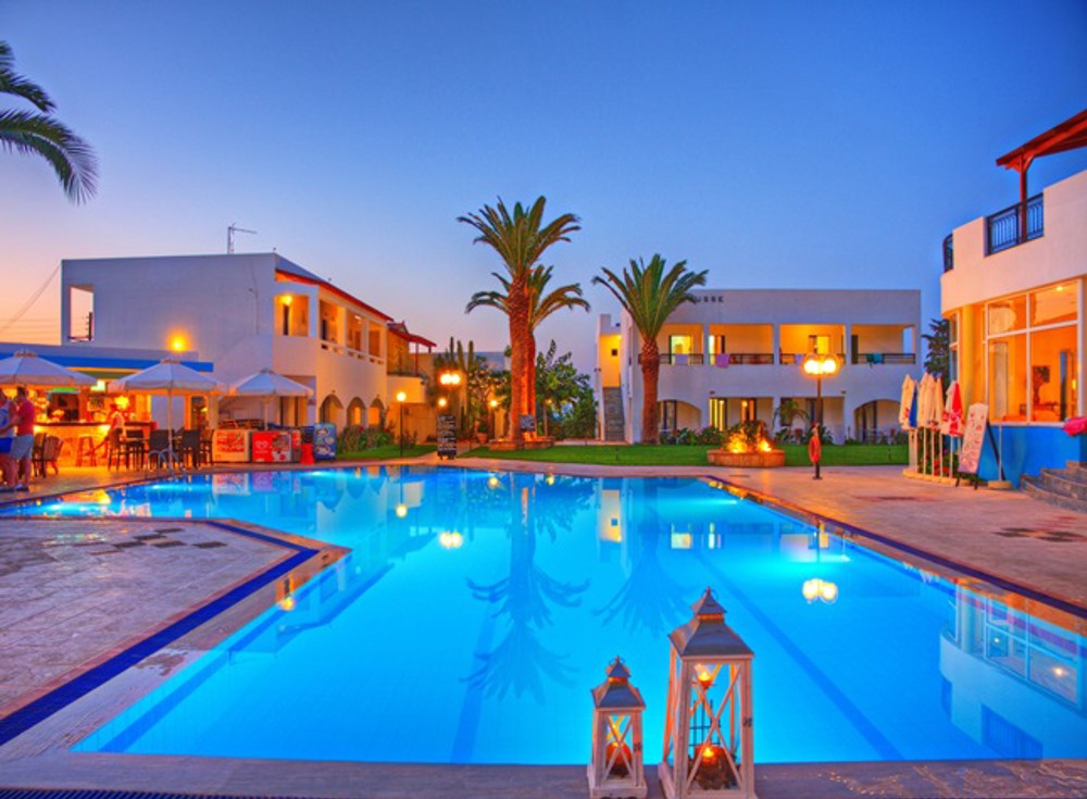The Maria Rousse Studios are set back in a quiet location amidst lovely gardens. These self catering studios are bright and spacious, and have a large pool and sun terrace, with a pool bar and TV lounge with views of the mountains. However, the lively resort of Malia with its fantastic selection of bars, shops, tavernas and clubs is within a short walking distance. The sandy beach of Malia is just 900 metres away.