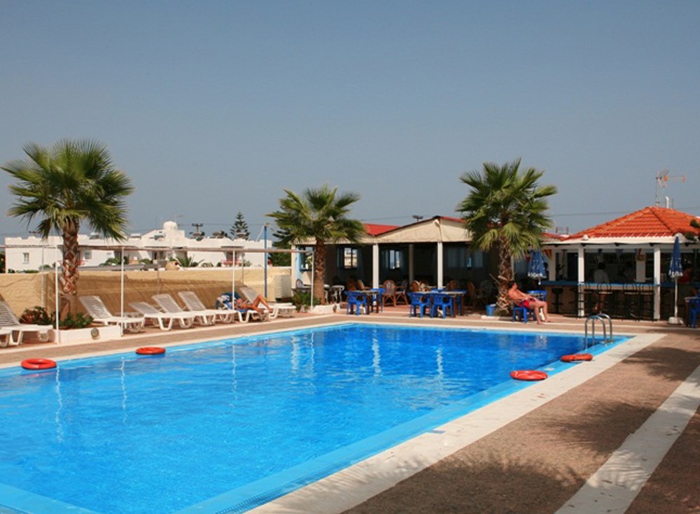 Meals: All meals are served in the Main Restaurant. Buffet breakfast 07.30-09.30, buffet lunch 12.30-14.00 including table d' hote or a buffet and dinner buffet 19.00-21.00. Snacks: Filter coffee/tea and cookies served at the Pool Bar 15.00-17.00. Drinks: Juices and water available during breakfast, lunch includes wine (red and white), draught beer, refreshments from the dispenser, soft drinks and water and dinner includes refreshments, soft drinks, wine (red or white) and draught beer. Drinks are also available from the Pool Bar 10.00-22.00, serving refreshments, soft drinks, water, wine (red or white), draught beer and local drinks (brandy, ouzo and raki). This is a Light All Inclusive programme, other services are payable locally.