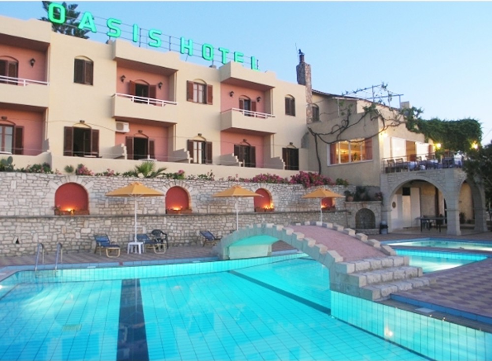 Situated in a panoramic uphill location overlooking the sea near Skaleta, the Oasis Hotel is 400 meters from a sandy beach and 12 kms from the centre of Rethymnon.