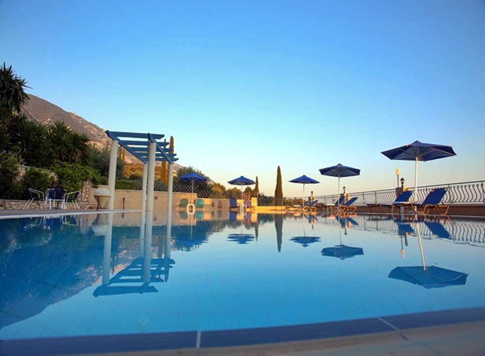 Decorated in hues of blue and white, the Studios and Apartments of Diana offer a unique panoramic sea and mountain view, featuring an outdoor pool.