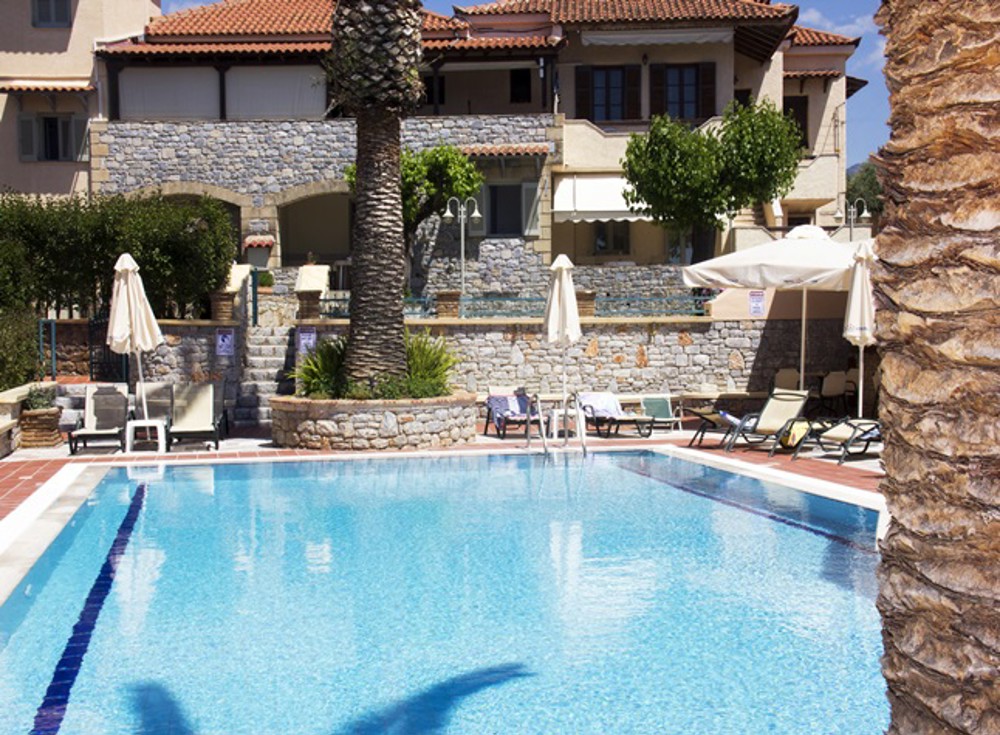 The Madena Apartments are on the main village road through Stoupa and are ideally located for all of the amenities that Stoupa has to offer. It is approximately 250 metres to the town's golden beach with its clear turquoise waters and the same distance to the nearest supermarket and a taverna. The resort of Stoupa itself is a charming village with plenty of restaurants to sample along the waterfront. These studios are perfect for those seeking a comfortable base from which to explore Stoupa and the surrounding area. The stunning backdrop of olive groves, wooded hillsides and the beautiful Taygetos mountains is truly breathtaking.