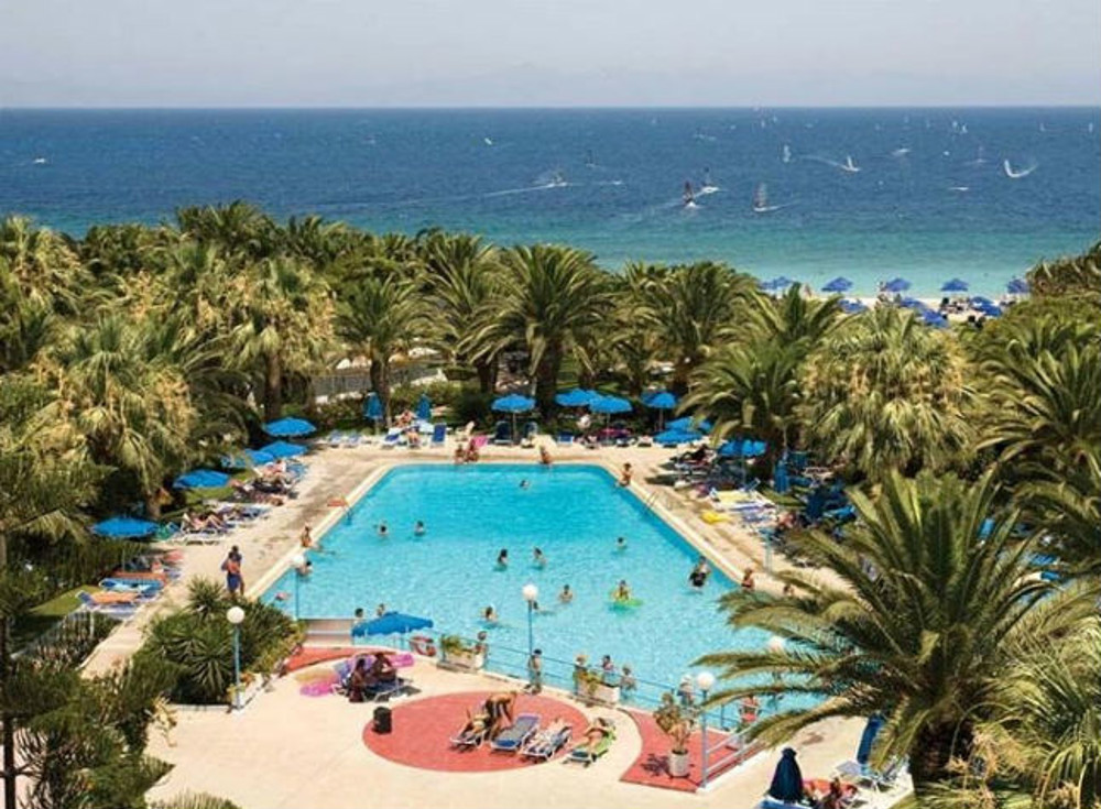 The attractive Blue Horizon Resort is set amongst pleasant gardens; it has a large swimming pool, and a children's pool, with plenty of space to soak up the Greek sunshine. There are a range of activities to please guests of all ages, from water aerobics to tennis and volleyball, as well as plenty of fun activities to keep the little ones amused. It is located on the beautiful pebble/sand beach, where wind surfing are on offer. Trianda's local amenities are within a few minutes walk.