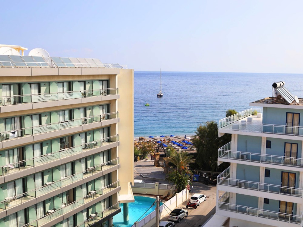 Elite Hotel is a contemporary 4 star property located in the heart of Rhodes, offering an ideal base for guests seeking a blend of relaxation and city exploration. Just a short stroll from the island’s renowned Elli Beach and the medieval Old Town, this stylish hotel provides easy access to the island’s cultural treasures, vibrant nightlife and shopping districts. The hotel features a selection of modern, well appointed rooms and suites, designed with comfort and convenience in mind. Each accommodation is equipped with air conditioning, complimentary Wi-Fi, flat-screen TVs, and private balconies, ensuring a pleasant and restful stay. Guests can start their day with a rich buffet breakfast in the hotel’s welcoming dining area or unwind at the bar, which serves a variety of beverages and light snacks. Perfectly suited for couples, solo travellers and groups Elite Hotel combines a relaxed atmosphere with contemporary amenities, making it an excellent choice for those looking to explore Rhodes in comfort and style.