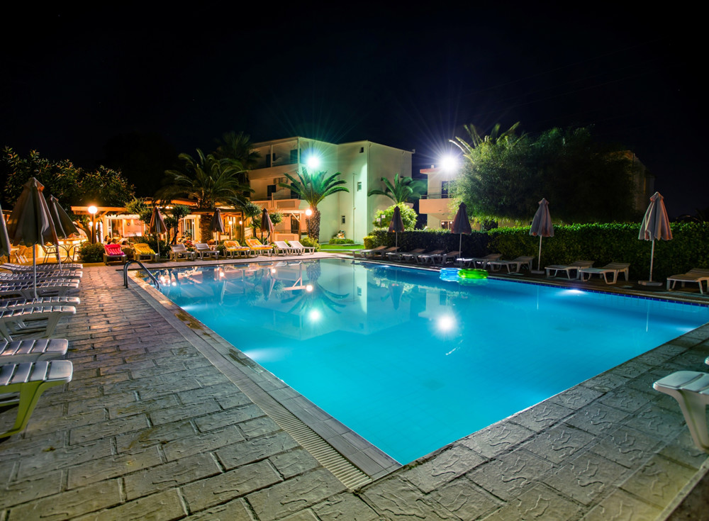 Meals: Breakfast (07:30-09:30), continental breakfast (09:30-10:00), lunch (12:30-14:00) and dinner (19:00-21:00). All meals are buffet style and served in the main restaurant. Afternoon coffee & tea with cookies (16:30-17:30). Drinks: Locally produced alcoholic & non alcoholic drinks - draught, soft drinks, juices, wine, beer, ouzo and selected spirits (10.30 - 22.30). Spirits available (16:00-22:30) and a complimentary cocktail is available (21:00-22:00). All international branded drinks, bottled soft drinks, ice cream, mineral water, pizzas and toast are payable. Entertainment: Tennis, volleyball, table tennis, table football, basketball, games, pool games, animation, boccia and billiards.