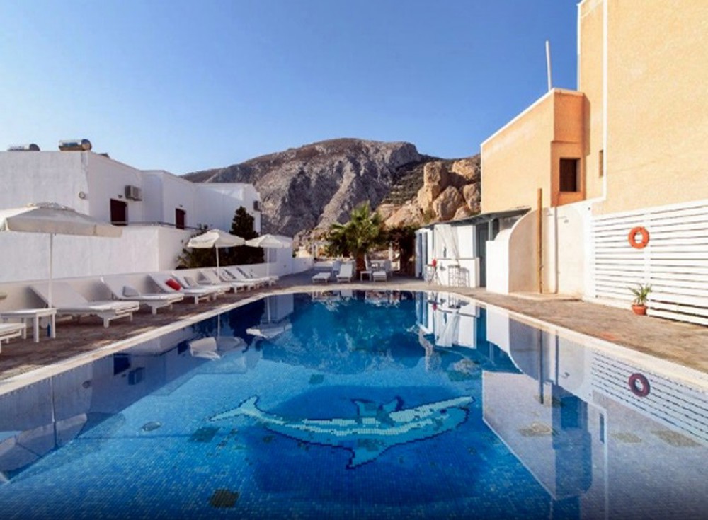 The Alitana Boutique Hotel is a newly renovated property located in the center of Kamari Village in close distance to the black sandy beach of Kamari. The hotel includes 40 cozy standard double rooms, Continental buffet breakfast , a large pool with pool bar open all day long, free wifi and a reception desk open 24 hours.