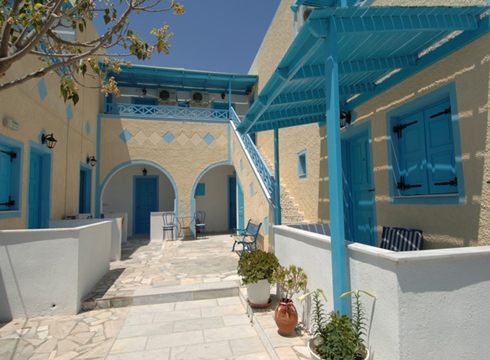 The traditional style, well kept Irene Studios are located 700 metres from the black sandy beach. Mini markets, tavernas, restaurants, shops and a bus stop can all be found within walking distance of the studios. This is a small, family run accommodation located in the quiet back streets of Perissa. This simple style accommodation is perfect for those seeking a relaxed atmosphere in an accommodation set amongst beautiful surroundings.