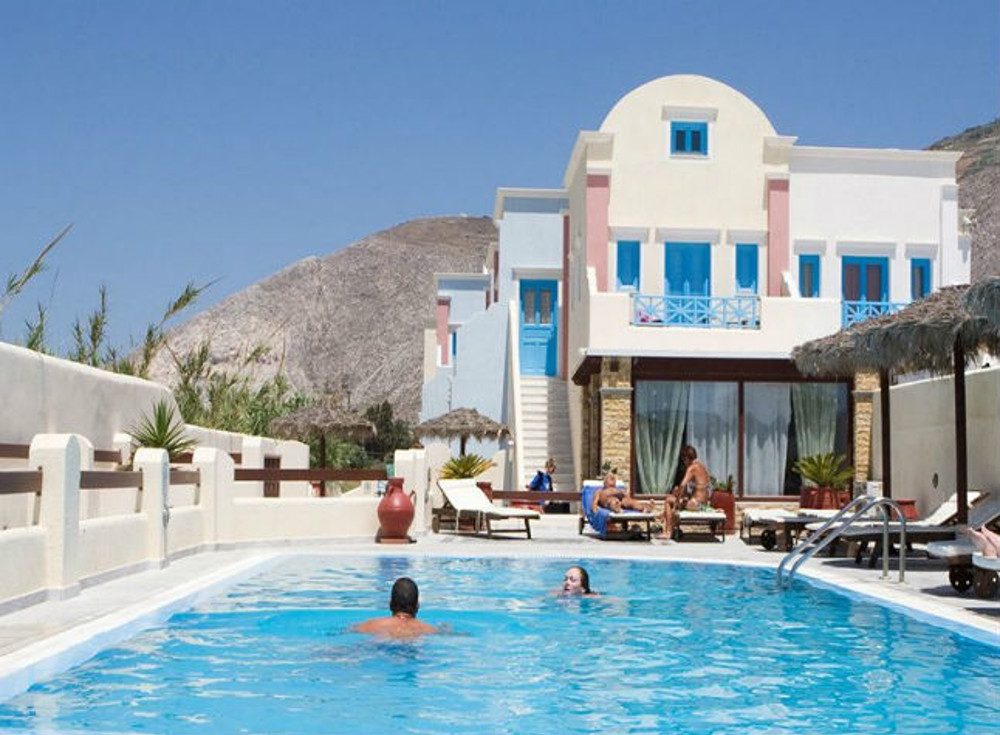 The Blue Diamond Bay Hotel is a new family-run accommodation, complete with pool bar. It is in a great location between Perissa and Perivolos, right on the black sandy beach, about 10 minutes from a selection of shops and tavernas. This modern and spacious property is the ideal place to relax and unwind. The hotel is built according to the traditional style of the Cyclades islands and will provide a tranquil surrounding for your holiday. It is ideal for families with children of all ages.
