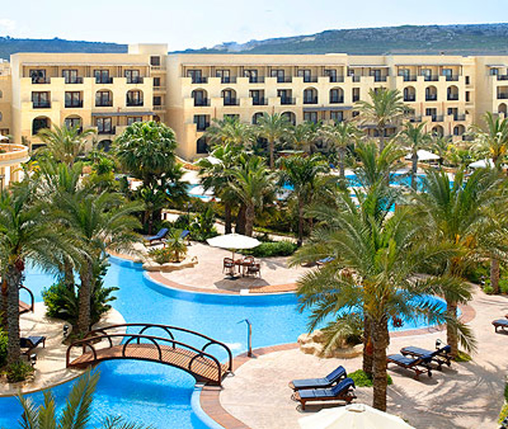 The Kempinski Hotel San Lawrenz a five star deluxe resort offering the highest levels of service, comfort and style. Surrounded by 30,000 sqm of garden, the resort complex was built to fit architecturally into the yellow limestone. It offers 122 cool, airy rooms and suites, decorated in the traditional hunting lodge style. The entire resort creates an elegantly rustic atmosphere in the lobby with natural stone floors, palm trees, flower beds, with the Mediterranean colours ranging from golden yellow to full orange, clay red, to warm brown, guests find the surroundings relaxing, comfortable and stylish.