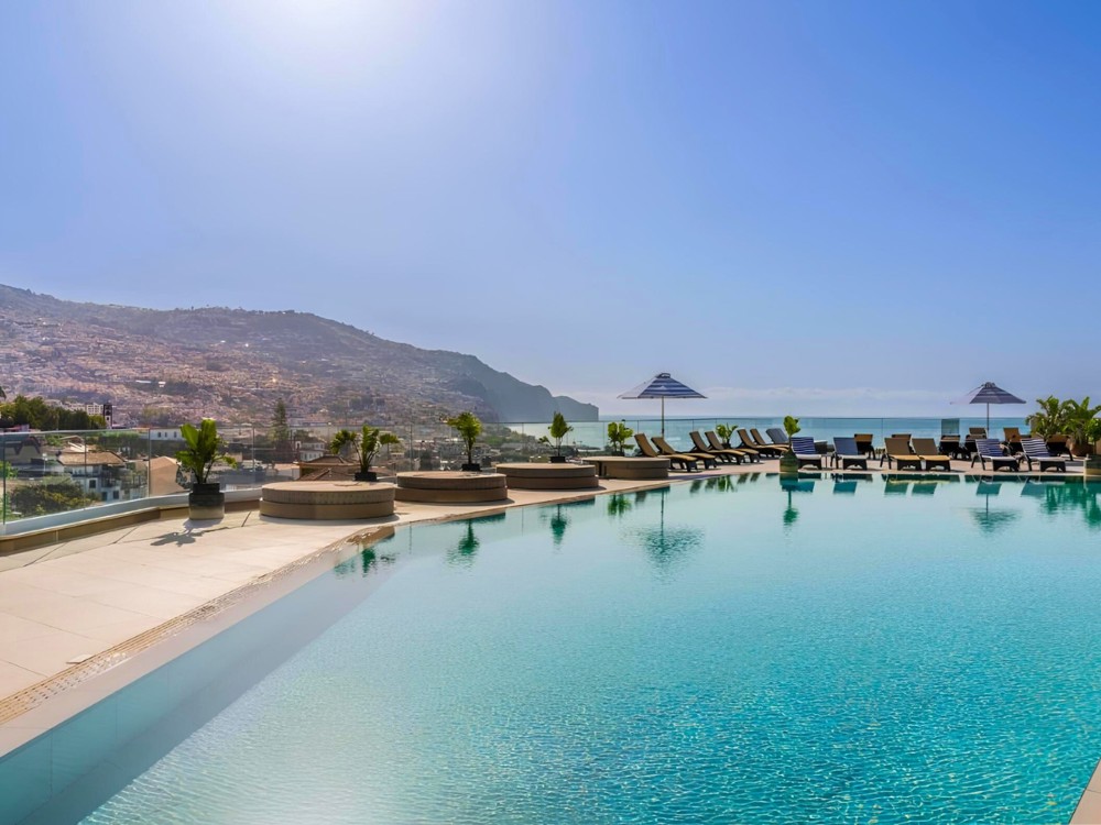 The hotel provides modern, comfortable rooms with a range of facilities, including an outdoor pool, a relaxing spa, and a fitness centre. Guests can dine at the gourmet restaurant, enjoy drinks at the bar, or explore nearby Funchal.